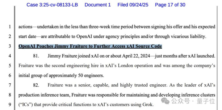 起诉书中列举了涉及到的xAI离职员工,并认定OpenAI的一名HR就是这一系列挖角和“窃密”行为的幕后黑手。