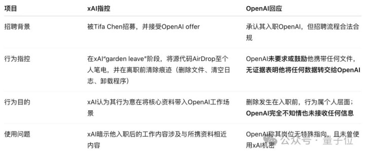 xAI认为其行为与OpenAI招聘密切相关,且其受雇岗位即与原xAI职责重合,而OpenAI这边和他联系的招聘官也是Tifa Chen。
